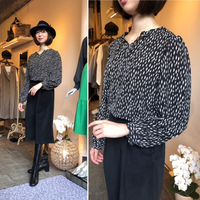 レオパードプリントブラウス ¥7590💕 大人気のレオパードプリントブラウスと黒のキュロットパンツ+ロングブーツのコーデはいかがでしょうか? 今季は久しぶりにキュロットパンツが旬の着こなしを仲間入りです💕 とても新しい新鮮なスタイリングになっております ウェストゴムでフリーサイズのアイテムとなっております こちらのキュロットは、早くもメーカー完売となってしまいましたので、気になる方はお早めにゲットしてくださいね パンツのお色違いは、グレージュがございます ブラウス ¥7590 キュロットパンツ ¥10780 ロングブーツ ¥13200 2021年9月11日