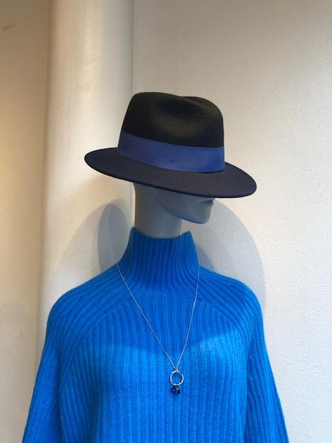 ハット黒❎ブルー ¥7590💕 ウール調のポリエステル素材にブルーのテープがとてもクール💕 シンプルな着こなしに映えるハットです サイズ調節出来ます💕 秋冬の着こなしのポイントにぜひお一ついかがでしょうか? ハット ¥7590💕 2021年9月17日