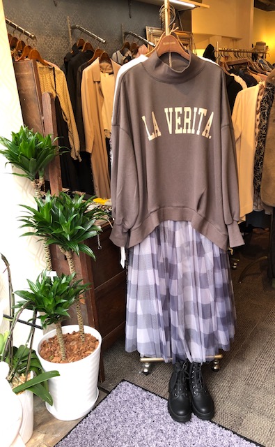 チェックのチュールスカートコーデ💕 ロゴトップス❎チュールスカート スウェット素材のプルオーバーとフェミニンなチュールスカートのコーデはいかがでしょうか? カジュアルミックスされるから、スニーカーやカジュアルブーツで楽チンコーデがキマります💕 また、パンプスで合わせると、都会的でこなれたコーデになります 💕💕💕 トップス ¥4950 チュールスカート ¥14300 ブーツ ¥18480 2021年9月18日