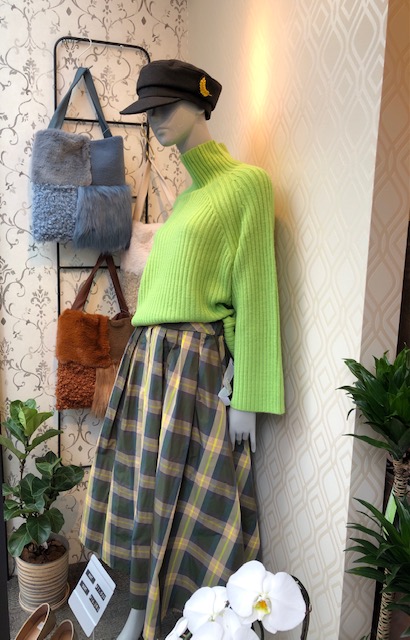 アップルグリーンのニット ¥11000 ビビッドなアップルグリーンのニットは真冬のコーデを華やかにしてくれるスパイスカラー💕 グリーンカラーのチェックスカート こんなカラーで元気に合わせたくなってくる💕💕💕 トップス ¥11000 スカート ¥16280 帽子 ¥6490 2021年9月18日