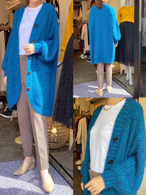 ニットカーディガン¥14300✨ 丈長めのニットカーディガンはいかがでしょうか✨✨ ざっくり編んだニットが見た目にも暖かいですよ😊💛 こちらは10月中旬に入荷予定ですので、気になる方はお早めにお問い合わせくださいませ❣️❣️ ニットカーディガン¥14300 2021年9月28日