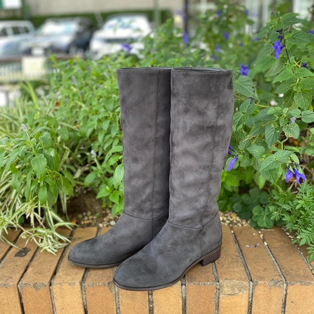 ブーツ¥13200✨ スウェード調のロングブーツのご紹介です✨ インスタライブなどでもたびたび登場しているおすすめアイテムになります💕 グレーのブーツは一足持っていると本当に着まわししやすく便利ですよ😍❣️ ブーツ¥13200 2021年10月1日