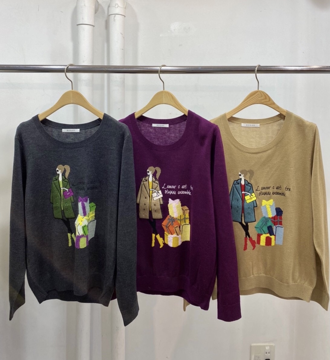 女の子モチーフニット💕 女の子モチーフが素敵なニットが到着しました💕 グレー、パープル、ベージュ の3カラーです コンパクトなシルエットで、どんなコーデにも合わせやすいのが嬉しい💕 チクチクしないサラッとした着心地もGOOD💕 女の子ニット ¥12100💕 2021年10月3日