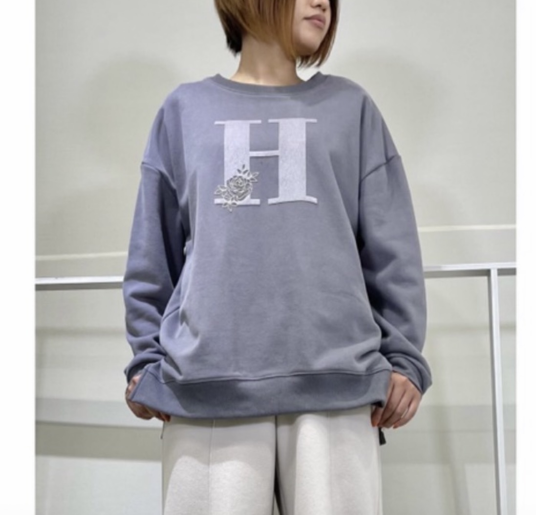 ハラコプリントトップス💕 Hのロゴをハラコプリントにした、デザインプルオーバー が到着しました💕 グレー、グリーンの2カラーとなっております ビックシルエットでも着膨れしない💕⤴️ しなやかな素材感も◎ ハラコデザイントップス ¥14080😍 2021年10月14日