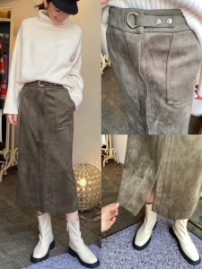 スカート¥8690✨ ざっくりニットにタイトスカートのスタイリングもおすすめです❣️ スウェード調の質感が秋らしく、ウエストの留め具もとてもお洒落です✨💕 裾にスリットが入っているので動きやすさも🙆🏼♀️✨ スカート:ポリエステル93%ポリウレタン7% スカート¥8690 2021年10月16日