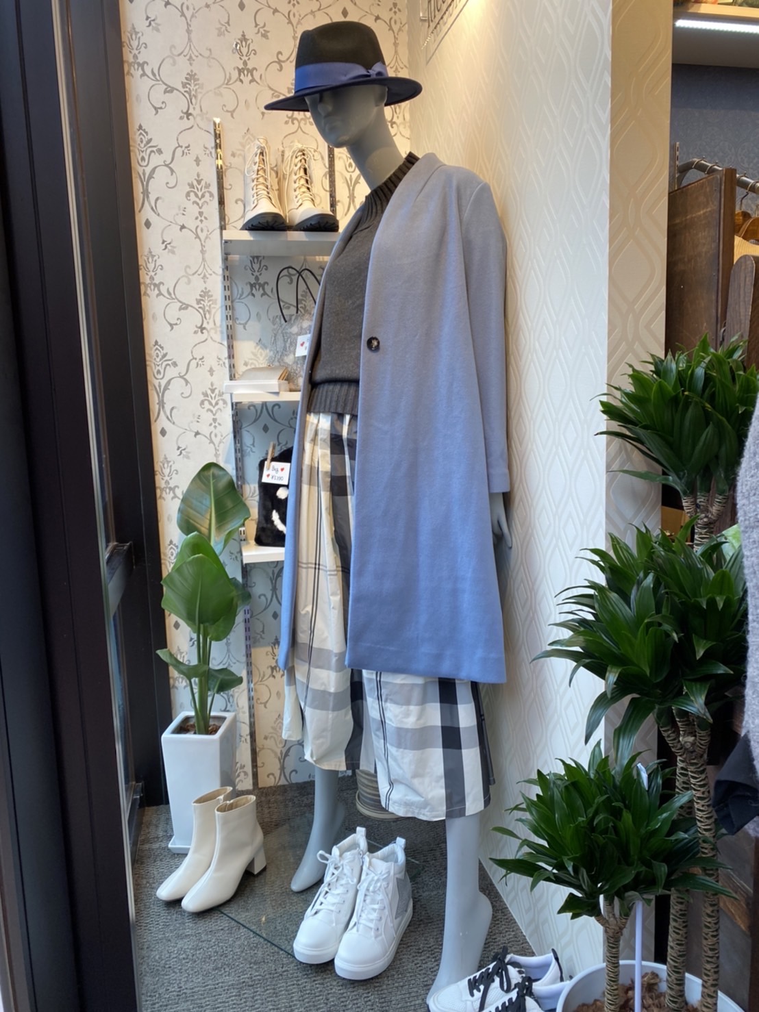 ノーカラーコート💕 ¥25300 綺麗なノーカラーコートが到着しました💕 スッキリしたシルエットで、とても軽くて暖かい⭐️ ワンボタンで着丈が長すぎないので、小柄な方にもおすすめです💕 お写真のブルー、アイボリー、ブラックの3カラーで入荷しました 素材 アクリル 58% ポリエステル 42% (裏地) ・ポリエステル 100% バスト 103 cm 着丈 99cm 帽子 ¥7590 ニット ¥7590 スカート ¥14080 2021年10月23日