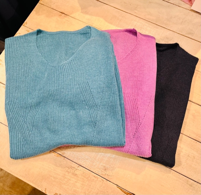 Vネック前後差ニット💕きれい色 肌触りの良いVネックのニットは綺麗なカラーがお薦めのポイントです💕 ブルー、ピンク、オレンジ、ブラック、ネイビー、ベージュ、ブラウンの7カラーで入荷しました💕 スッキリしたシルエットで、ボトムスを選びません どんなコーデにも万能のニットです Vネック前後差ニット ¥8690💕😍 2021年10月24日