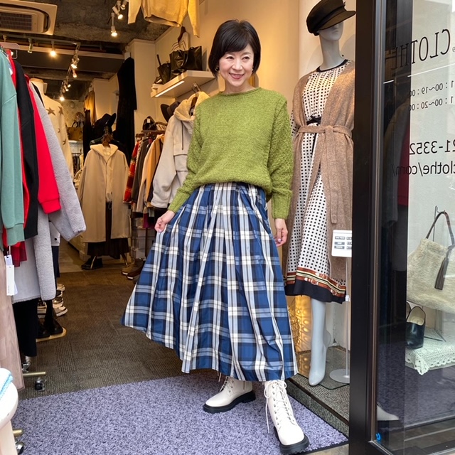 ニット¥10780 スカート¥16280✨ おうちで手洗い出来るニットに、大人気のチェックスカート✨✨ ニットは写真のグリーンのほかに、パープルとベージュがございます😊 どのカラーも綺麗でおすすめです💕💕 ニット¥10780 スカート¥16280 2021年10月26日