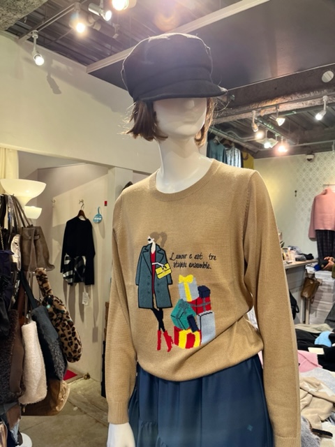 女の子モチーフニット ¥12100💕 キュートな冬のスタイリングの女の子のモチーフニットが到着しました💕 春先まで着られる、ソフトニット素材です。 スッキリしたシルエットで小柄さんにもおすすめのニットです。 お色違いはグレーがございます💕 2021年10月27日