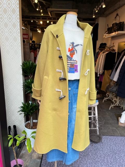 イエローのダッフルコート💕 綺麗なイエローカラーのダッフルコートが到着しました💕 フェミニン何卒着こなし、デニムコーデ、どんなスタイリングも爽やかに品良く纏めてくれる優秀なアウターです お色違いは、レンガ色とアイボリーになります 綺麗色のコートは、見つけた時が買い時です💕 しなやかなで肩残らないコートです コート ¥42900 ニット ¥15290 2021年10月27日