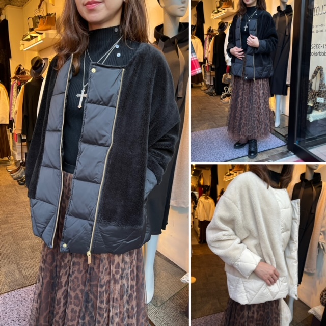 ノーカラーボアブルゾン💕 ボア素材と中綿のキルティングを配色した軽量のノーカラーブルゾンが到着しました💕 とっても軽くて暖かく、着るだけでオシャレに決まります⭐️⭐️⭐️ アイボリー、ベージュ、ブラックの3カラーで再入荷しました💕 今から春先まで大活躍してくれますよん 昨年も早めに売り切れてしまった人気の商品です😍 ブルゾン ¥15180 2021年11月3日