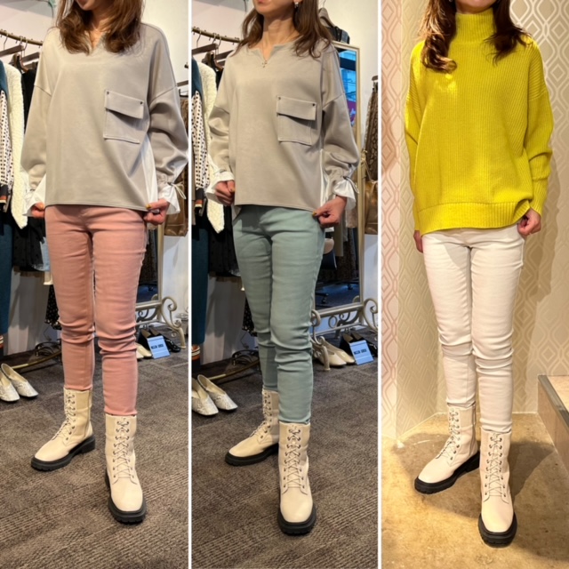 美脚ストレッチ暖パン💕💕💕 毎年人気の美脚ストレッチ暖パンが到着しました💕 昨日までは暖かい日がございましたが、この冬はかなり冷え込む予想となっておりますので、タイツ不要のこちらの暖パンならとっても経済的で快適です⭐️⭐️⭐️ 今年はピンク、ミントグリーン、イエローの新色が入って、定番の白、黒、カーキと合わせて6カラーで展開しております😃🎉 新色カラーは追加生産無しで今回限りとなりますので、気になる方はお早めにチェックされて下さいね ストレッチ美脚暖パン ¥14080 S.M.L 3サイズ ブーツ ¥11000 2021年11月16日