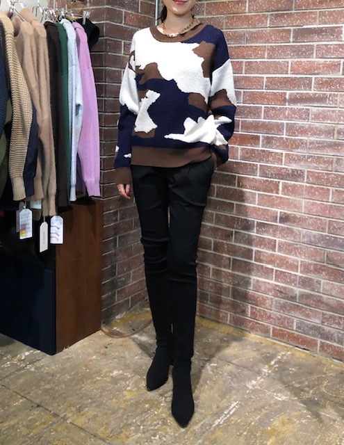 迷彩デザインニット💕 茶系の迷彩デザインが素敵なシンプルニットが明日入荷いたします💕 非ウール素材で極暖&軽量です かなりレアなデザインです⭐️⭐️⭐️ 本格的な冬はもーすぐそこまで来ております💕 素敵なニットで暖かくお過ごし下さいねーーー ニット ¥10780 パンツ ¥5390 2021年11月16日