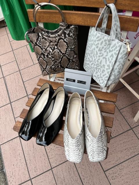 パイソンバック💕レオパードバック 携帯やハンカチなどちょこっと持って出かけるのにめちゃ便利なポシェットバック💕 プリントバックの他にメタリックなども再入荷しております お友達のプレゼントにも最適です💕💕💕 バック ¥3630〜 フラットシューズ ¥6490 2021年11月19日