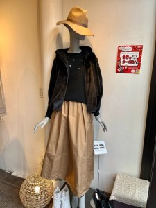 タフタ素材のスカート リバーシブル💕 シックなキャメルとブラックチュールのリバーシブルスカートが到着いたしました💕😍 ブラックにパール付きのニットとファーベストのコーディネートにしてみました💕 タフタのスカートで高見えして、フードベストでカジュアルダウン⭐️⭐️⭐️ 旬のスカートコーデの完成でーす 新作のアイテムが沢山入荷しました💕 掘り出し物を探しにいらして下さいね 2021年11月19日