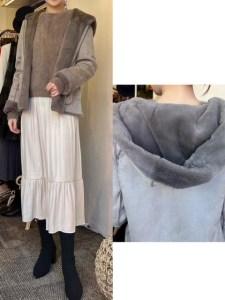 フェイクムートンコート¥21890→¥17512✨ フェイクムートンで見た目も暖かいショートコートはいかがでしょうか❣️ 合わせやすいグレージュカラーに 大きめのフードが可愛いですよ✨✨ 今ならお買い得になっております💕💕 フェイクムートンコート¥21890→¥17512 2021年12月28日