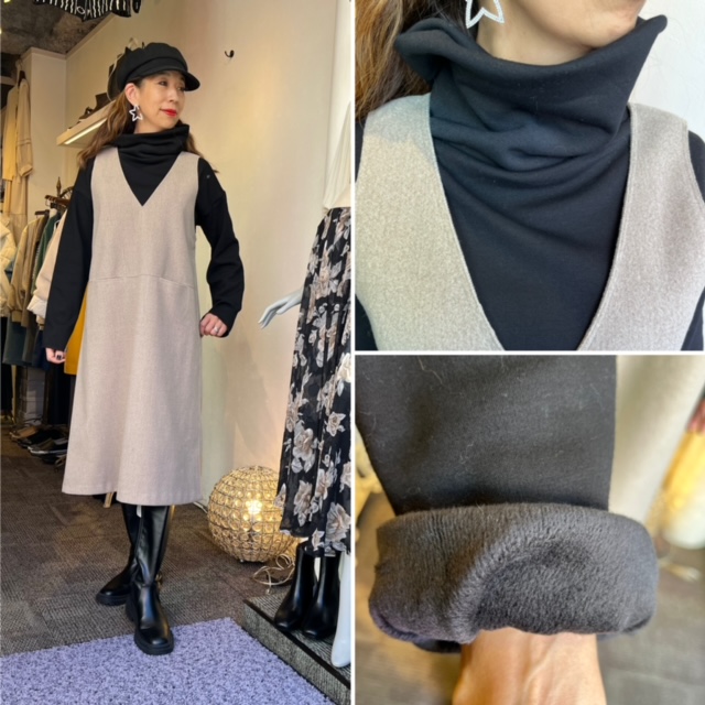 インナーのオフタートルは裏起毛でふんわり暖かい素材で、とっても着やすいです