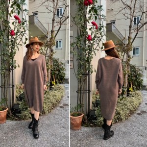タスマニアウール ワンピース💕 タスマニアウール&made in JAPAN💕ワンピース ¥17600 上質なタスマニアウールを日本で編んだ、ニットの名産地 山形ニット のワンピースです ホールガーメントで編まれており、無縫製ならではの快適な着心地とフイット感⭐️⭐️⭐️ 少し深めのVネックで女らしさ満点のニットワンピース です お写真のモカブラウンとグレーの2カラーとなっております ニット ¥17600 帽子 ¥8690 2021年12月2日
