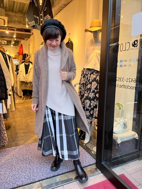 フォックスファーのニットコート 💕 カーディガンなのに極上の暖かさを誇る、フォックスファーのニットコート はいかがでしょうか? こちらのモカブラウンがラスト一枚となってしまいました💦💦 羽のように軽く、極暖です スカート ¥14080 ニットコート ¥32890 帽子 ¥5390 2021年12月2日