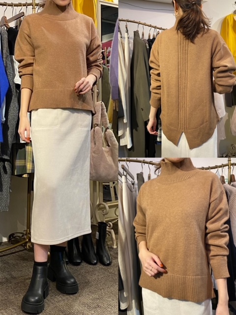 ニット¥4290 スカート¥10780✨ シンプルで着回し力抜群のハイネックニットは大特価の¥4290😳❣️ 後ろのデザインも可愛くておすすめです✨✨ スカートはウエストゴムで、おうちで手洗いOKなのでお手入れも楽ちん☺️ ニット¥4290 スカート¥10780 2021年12月4日