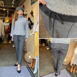 グレーコーデ💕 グレーのダイヤ柄のシャギーニットとテーパードパンツのコーデはいかがでしょうか? キチンと見えてめちゃ履きやすい⭐️ ストレッチ素材のパンツはウェストの紐で調節可能です💕 36.38の2サイズで到着しました 少しだけキラキラするシャギーニットは毛玉にならないからいつまでも綺麗に着ていただけます💕 グレーの他にアイボリーとブルーがございます 3カラーで入荷しております ニット ¥8690 20%オフ ¥6952💕 パンツ ¥16280 帽子 ¥5390 パンプス ¥10780 2021年12月5日