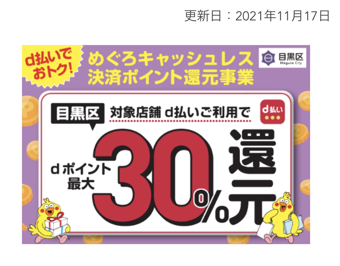 決済金額の最大30パーセントをdポイントとして還元します