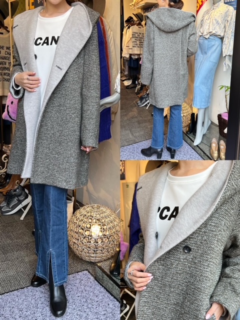 フードコート¥32890→¥23023✨ ウール65%で軽くて暖かいアウターはいかがでしょうか☺️💕 大きめの襟とフードが配色になっていてとてもお洒落ですよ✨✨ ポケットもついているのが嬉しいポイント😉❣️ フードコート¥32890→¥23023 2021年12月10日