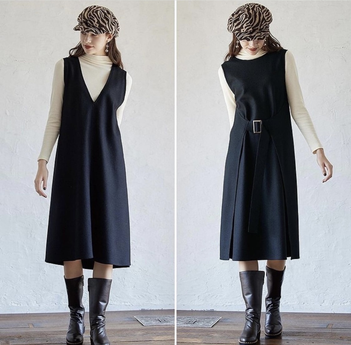 2wayワンピース💕 Vネックのデザインと、ウェストバックルのデザインを前後で着られるデザインワンピースはいかがでしょうか? Vネックの方で着られますと、着痩せ効果120%の効果があります💕😍 とっても軽い上質なウール素材でふんわりと暖かい💕 ベルトマークで身幅を調整出来ますので、フリーサイズ となっております ワンピース ¥20790💕 ブラック、キャメル、グレーの3カラーで最終入荷となっております。 春まで大活躍してくれそうです💕💕💕 2021年12月10日