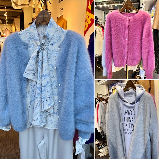 春色のニットカーディガン 極暖で超軽量💕💕💕更に毛玉レスのストレスフリーな極上ニットが沢山再入荷致しました😍 メーカーさんに在庫を集めて貰いまして、今期最終の入荷となります🎄 何年経っても、綺麗に着られるから、いつもこのニットを着てしまう😍 そんなお客様の声が嬉しい💕 ぜひ一度お店でご体感くださいませね ピンク サックスブルー ¥24200 FOX 100% グレー ¥17600 ラクーン、アクリル、ウールミックス 2021年12月15日