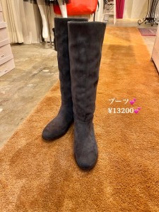 エコスウェードのロングブーツ💕グレー シックなグレーのロングブーツで、こなれ感のあるスタイリングを楽しみませんか? ブラックも使えますが、ピンクやサックスブルー などのソフトなカラーのボトムスを春っぽく着たりするには、こんなブーツがお役立ちです⭐️⭐️⭐️ 筒周りもゆったりめなので、デニムや暖パンをインして履けます💕 プチプラですが、しっかりした作りでとても履き心地が良いブーツです ブーツ ¥13200💕 2021年12月21日