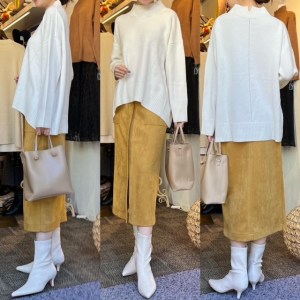 ニット¥9240スカート¥8690✨ ゆったりリラクシーな雰囲気のタートルネックニットに、大人気のフェイクスウェードスカート💕💕 ニットはお尻の隠れる丈で、スカートともパンツとも相性抜群です☺️✨ ニット:ウール100% ¥13200→¥9240 スカート:ポリエステル93%ポリウレタン7% ¥8690 バッグ¥6490 ブーツ¥9900 2021年12月23日