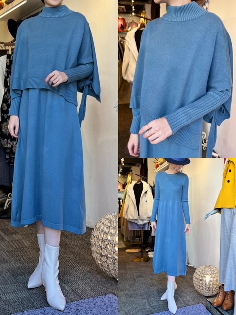 ニット&ニットワンピース¥7590✨ 綺麗なブルーのニットワンピースとニットのアンサンブルはいかがでしょうか💙 上のニットを脱ぐとシンプルなニットワンピに✨✨ どちらの着こなしも大変素敵でおすすめです🤗✨ ニット&ニットワンピース ¥7590 ブーツ¥9900 2021年12月23日