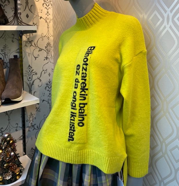 ロゴデザインニット💕 ビビッドなイエローにブラックのロゴが素敵なニットで、チェックスカートをコーディネートしてみました💕 少しスモーキーカラーのチェックには、こんなビビッドなカラーのトップスもオシャレです 白のブーツやスニーカーで春らしく合わせるのもGOOD💕 ニットはお色違いがライトグレーとなります どちらも一点限りとなっております💕 ニット ¥10780 SALE ¥8624 2021年12月23日