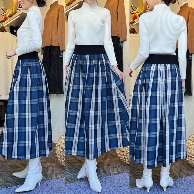 ニット¥5192 スカート¥14080✨ シンプルなリブニットに、大人気のタフタスカート💕💕 ウエストゴムで締め付け無く、ボリュームのある生地感ですので腰回りも綺麗にカバーしてくれます✨✨ ニットは今なら大変お買い得になっておりますよ✨ ニット¥6490→¥5192 スカート¥14080 2021年12月27日