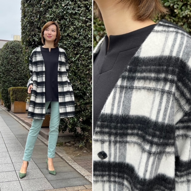 カラーパンツとチェックコート💕 春らしいミントグリーンの暖パンをモノトーンのノーカラーチェックコートでコーデしてみました💕 暖パンだからとっても暖かいので、スタイリングだけ、春の装い🌸🌸🌸 上質で軽くてとっても暖かいコートは今がチャンスです ぜひ一着ゲットしてみてください💕 マンネリなダークカラーコートを脱いだら、凄く爽やかになりますよぉ〜 暖パン ¥14080 SALE ¥9856💕😍 コート ¥32890 SALE ¥23023💕😍 2022年1月11日