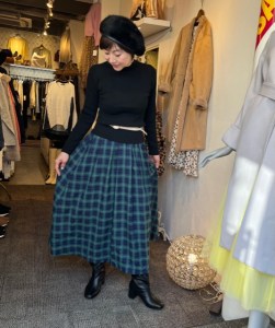 チェックスカートコーデ💕 コットン素材に裏が貼ってあって暖かいグリーン系のチェックスカートとブラックのスッキリニットのコーデ💕 帽子もニットもブーツも黒でまとめたら、アイボリーのベルトを差し色に、、、 スッキリとメリハリのある着こなしになります😃 合皮のブーツめちゃ履きやすいです ぜひトライくださいね 筒が大きいのでパンツでインもできます ニット ¥5390💕 スカート SALE ¥5192💕💕💕 ブーツ SALE¥11880💕💕💕 2022年1月16日
