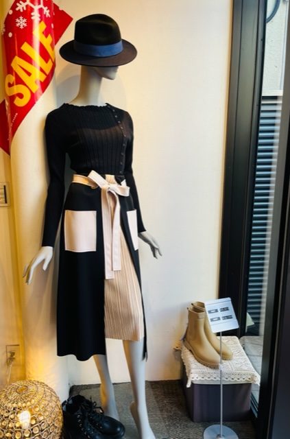 配色スカート💕¥10780 ストレッチ素材の生地を配色に切り替えたお洒落なセミタイトスカートが到着しました💕 伸縮素材でとても着心地が良いです お写真のブラック❎ベージュの配色と、ベージュ❎ベージュの配色の2カラーでもなっております 一足お先に春のコーデを楽しみたいお方におすすめの一着です💕😃 ニット ¥7590 SALE 30%オフ ¥5313💕 スカート ¥10780 2022年1月18日