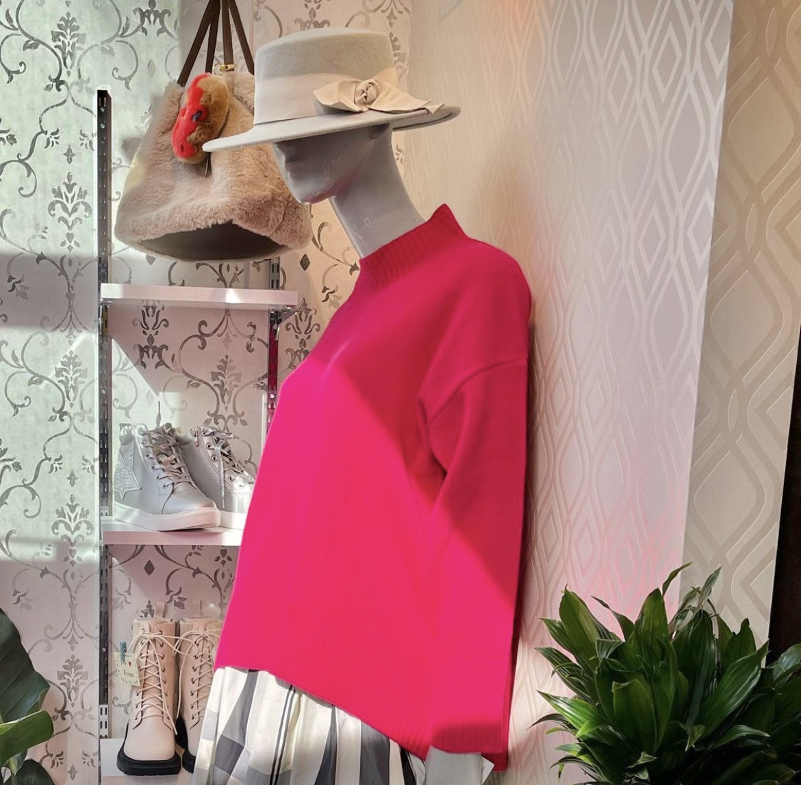 チェリーピンクのニット💕 とっても綺麗なチェリーピンクのニットが到着いたしました💕😃 モノトーンのボトムスやデニム、今季人気のチェックスカートやプリーツスカートにもおすすめのアイテムです💕 寒さはこれからが本番ですね おニューのニットで素敵な春のコーデでをお楽しみ下さいー 展開カラーは、チェリーピンク、パウダーピンク、オフ白、ミントグリーン、グレー、グレージュの6カラーとなっております ニット ¥13200 30%オフ ¥9240💕💕💕 2022年1月19日