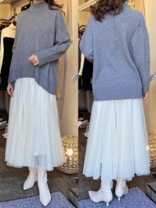 ニット¥9240 スカート¥13200✨ ウール100%の暖かニットに、大人気のチュールスカート🤍 ニットは長めの丈感でヒップもカバーしてくれますよ✨ 今なら大変お買い得になっております❣️ ニット¥13200→¥9240 スカート¥13200 2022年1月21日