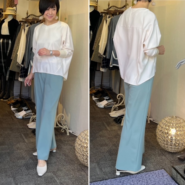 ミントグリーンのワイドパンツ 💕30%オフ ミントカラーのワイドパンツ💕 ¥14300 SALE ¥10010💕 サラッとした伸縮のポリエステル生地が履きやすいワイドパンツと白のトップスのコーデはいかがでしょうか? これからもバッチリお役立ちな生地なのに、30%オフ😍とお買い得です ヒップにもかなりゆとりがあり、落ち感があるのでラインが響きにくいです👌 ポケットあり💕 フリーサイズ💕 ウォッシャブル💕 着丈96cm お色違いはスモーキーピンクとライトカーキがございます💕 各一枚のみとなっております 破格のファイナルセールは1月31までとなります💕 春も使える掘り出し物が沢山ございます お見逃しなく💕💕💕 2022年1月23日