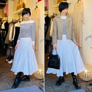 ボーダー❎ライダース 今季トレンドのボーダーニット💕 こちらは体に付かず離れずの絶妙なフィット感が◎ 白のスカートとベージュのライダースで春一番のコーデはいかがでしょうか? 破格のライダースは38.40の2サイズで一点のみとなっております 少しだけストレッチ感のあるエコレザーなので、雨の日も安心です ニット ¥5390 スカート ¥9790 ライダース ¥6930 お色違いはブラックがございます バック ¥13200 2022年1月23日