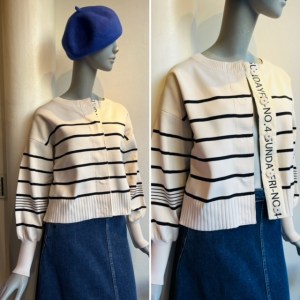 ボーダーデザインカーディガン💕¥10780 ロゴテープが前縦に付いたお洒落なニットカーディガン が到着しました💕 サックリとした軽〜い着心地💕 今から初夏まで大活躍してくれそう💕 白❎ブラック ネイビー ❎アイボリーで展開しております ホームクリーニングOK💕 ニットカーディガン ¥10780 2022年1月27日