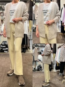 カーディガン¥9350 ロンT¥6490✨ 春まで着られるざっくりニットのカーディガン💕 モヘヤ混で暖かく、毛玉になりにくいのが特徴です✨ 中に着ているインナーは、バイオシルケットコットンを使用しているので毛羽立たず、ずっと綺麗に着ていただけますよ💕 大変おすすめのコーディネートです❣️❣️ カーディガン¥18700→¥9350 ロンT¥6490 2022年1月27日