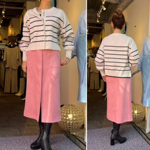 ボーダー❎セミタイトスカート💕 ボーダーのニットカーディガンが再入荷致しました💕😃 前縦の英字のロゴテープがとってもお洒落なデザインです 素材はポリエステル100%でとても軽いです😍 どんなアイテムとも合わせやすい着丈⭐️⭐️⭐️ お得になったストレッチタイトスカートと合わせていかがでしょうか? スカートはウエストゴムのウォッシャブル⭐️⭐️⭐️です カーディガン ¥10780 スカート SALE¥6083😍 Mサイズ位 アイボリー、サックスブルー 、ピンクの3カラー 2022年2月7日