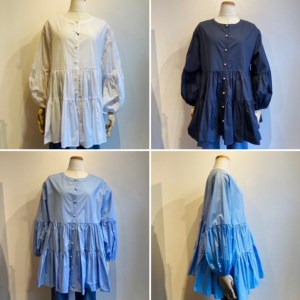パールポタンのティアードブラウス💕 春らしいコットン素材のティアードブラウスが到着しました💕 縦に並んだパールボタンと、広がりすぎないティアードがめちゃ可愛い😍 お袖は膝の辺りで切り替えていて、ふんわりと膨らむデザイン。 袖口のゴムで袖丈が上げられるのが嬉しい💕💕💕 白、ネイビー、サックスブルー の3カラーです コットン100% 胸囲108cm 着丈67cm 肩幅49cm 袖丈49cm ブラウス ¥10780💕 2022年2月7日