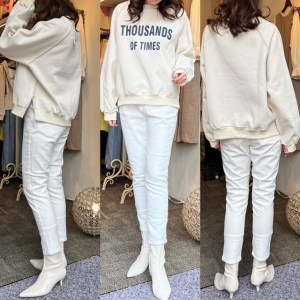 トップス¥6490✨ 程よい地厚感でとても暖かく、胸元のロゴがカジュアルコーデにポイントをプラスしてくれるスウェットはいかがでしょうか💕 裏地はボーダーになっていてとてもお洒落ですよ✨✨ トップス¥6490 2022年2月10日