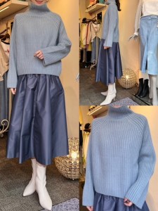スカート¥15290✨ ブルーグレーのワントーンコーデはいかがでしょうか💙 引き続き大人気のニットに、新入荷のタフタスカートです✨ スカートはお家で手洗いOKですよ💕💕 ぜひお試しください😉💙 スカート¥15290 2022年2月10日
