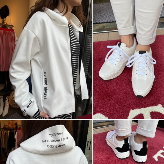 白のブルゾンとスニーカー💕 バックフードの部分やサイドラインにロゴをデザインしたブルゾン💕 軽くしなやかな素材で暖かく、春の冷たい風から守ってくれます ハイテクスニーカーは、柄の靴紐が付いていて、2WAYでお楽しみいただけます ソールが厚くて足を包み込むような作り💕 23.5cm 24.5cm であと少しございます メーカー完売商品ですので、気になる方はお早めにゲットしてくださいね ブルゾン ¥15290 スニーカー ¥13750 コメントは受け付けていません。