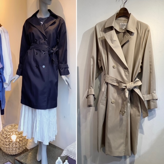 スプリングコート💕 春のトレンチコートが到着しました💕 定番のデザインで、しなやかな着心地🌸🌸🌸 オンにもオフにも着回し出来るお役立ちアイテムです ネイビー、ベージュ、キャメルの3カラーで展開しております コート ¥25190 2022年3月8日