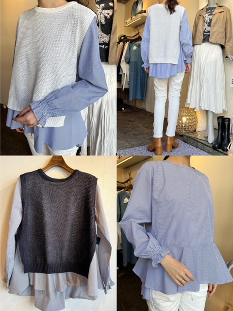 ニット&ブラウスセット¥10890✨ ブラウスとニットベストのセットアイテムはいかがでしょうか😊🌸 単体でも着回ししやすいアイテムで、コーデの幅が広がります✨ 濃いめカラーもございます💕 ニット&ブラウスセット¥10890 2022年3月8日